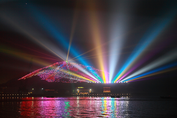 系统由多座岛组成的点光源同步控制。SPC-8000控制器连接GPS主机。系统由GPS主机,控制器-信号分配器,驱动模块组成。多座岛的点光源可同步播放各种动画,视频效果