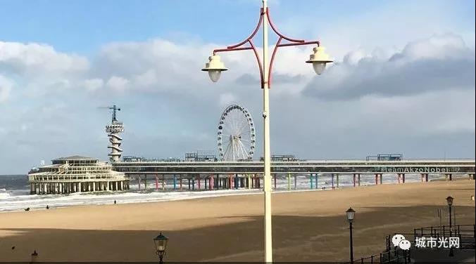 在席凡宁根(Scheveningen)海滩上竖起上千根“智能”灯柱。