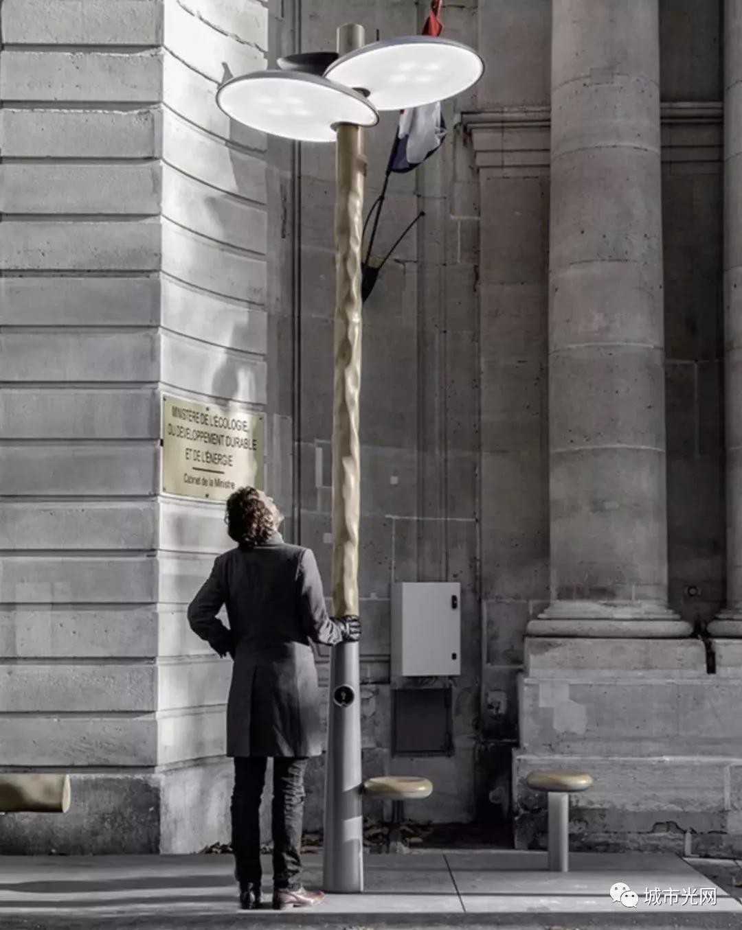 安装在巴黎的路灯,它除了具有路灯的基本功能,它还为人们提供了休息的座椅。