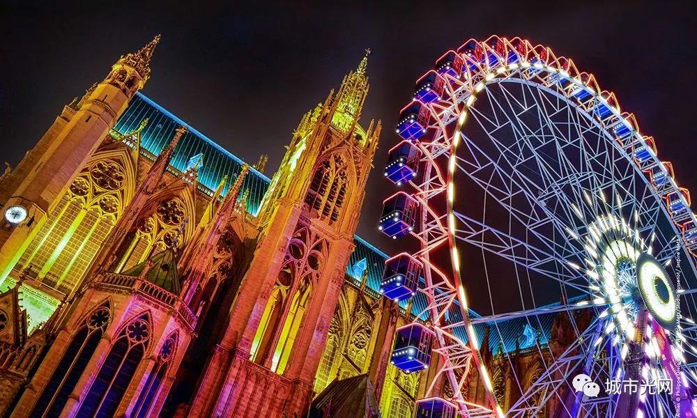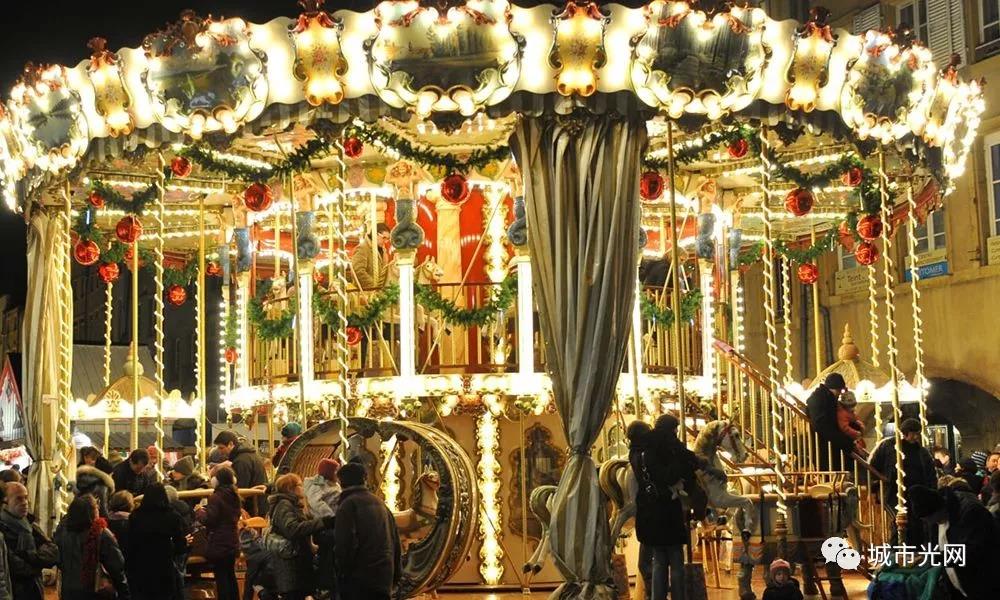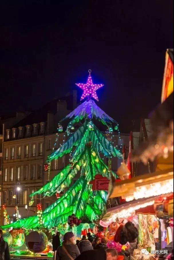法国梅斯的圣诞市集在灯饰的设计上更偏向于缤纷多彩,它不仅要把