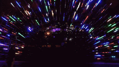 空间后触发感应系统,使得驱动轴加速旋转的节奏,光影斑驳落于地面,形成一个互动性与趣味性兼备的炫彩空间。