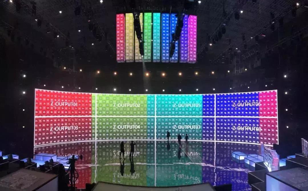 现场视频控制系统配置了disguise 的2台4*4pro 以及1台solo媒体服务器。