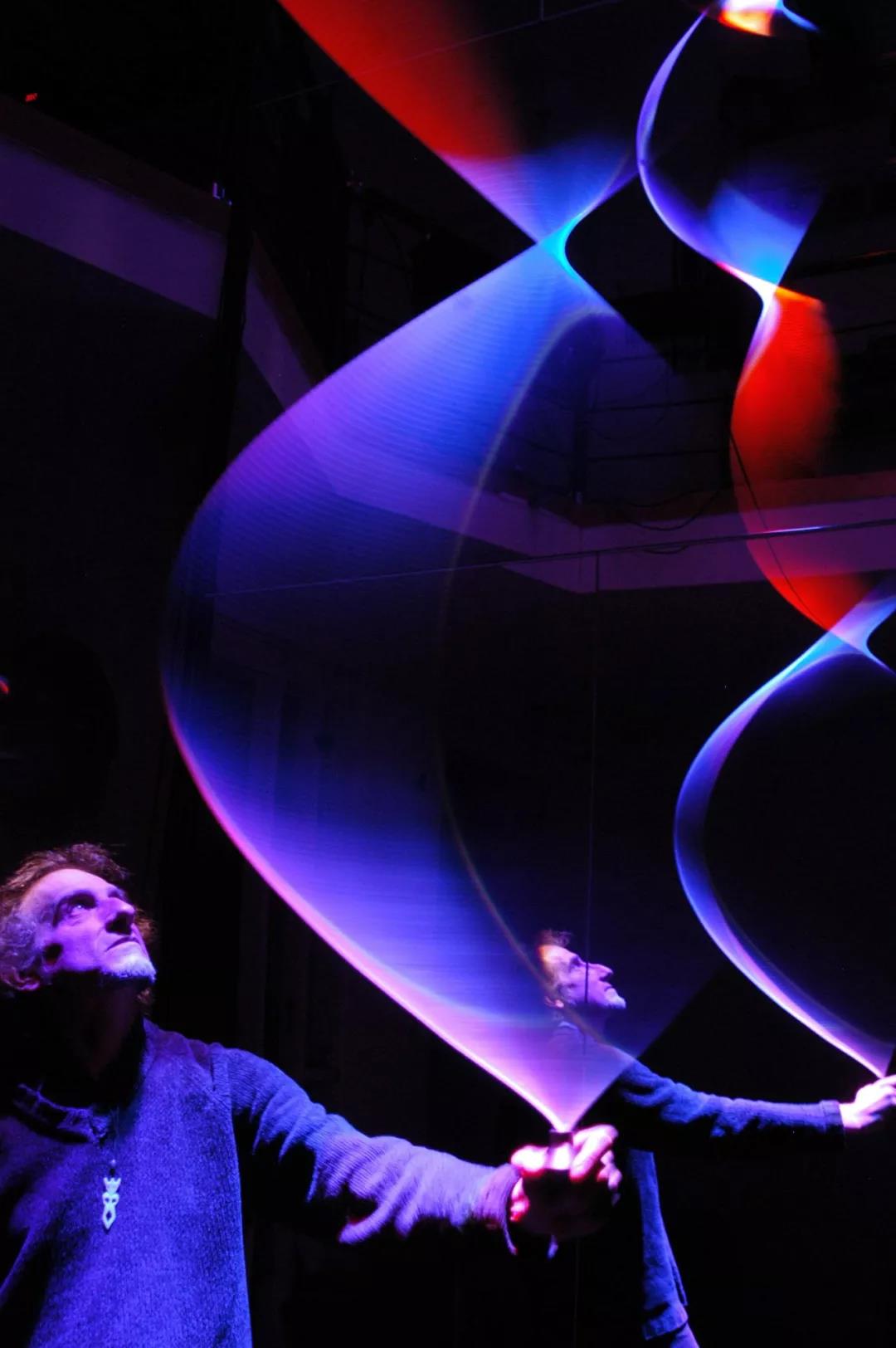 可以通过两根高频声束与乐曲互动,这些声音会改变绳子的振动速度和光线的颜色。