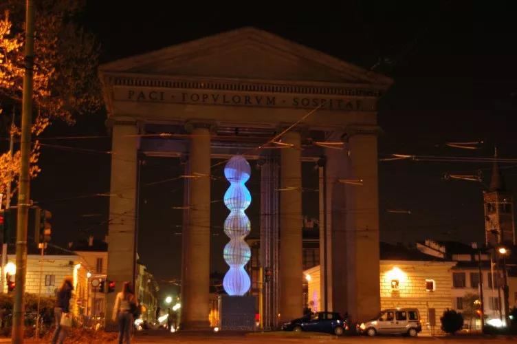 这件身高15米的雕塑是迄今创作最大的一组灯光雕塑,在马焦雷广场23号。