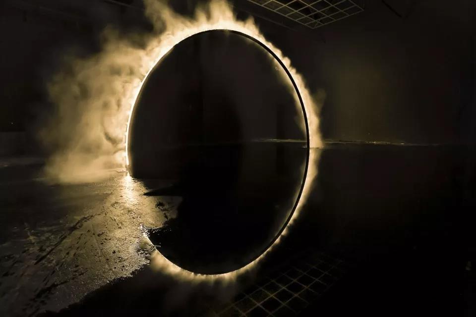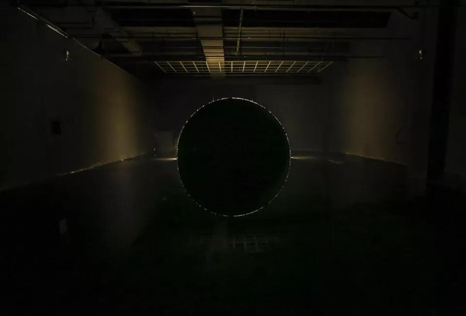水面反射圆弧形成一个完整的圆形,空间虽然比周边环境更加昏暗,但看起来像是一个入口区域,作品像是悬挂在空间中的阴影而不仅仅是表面的影子。