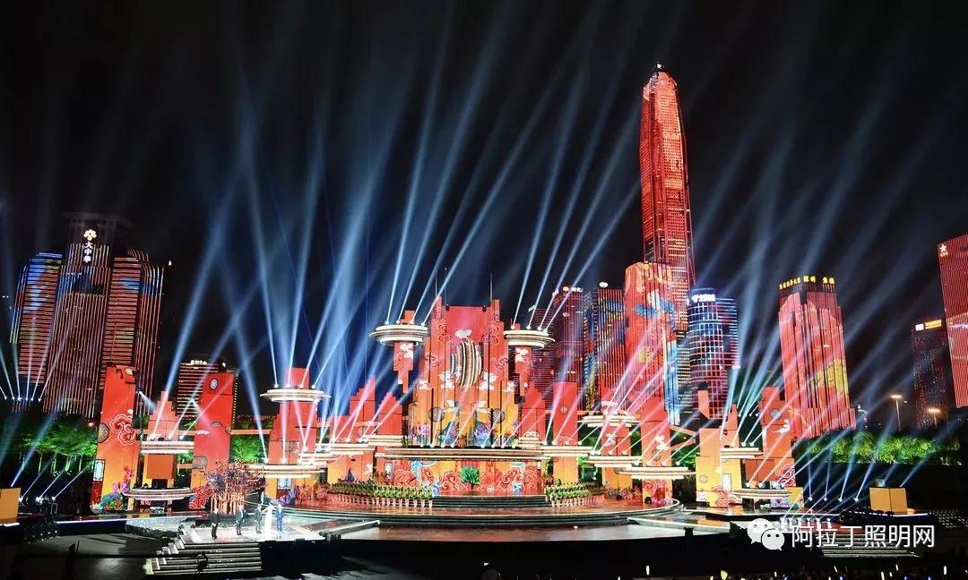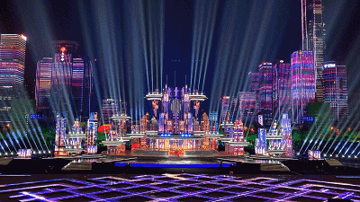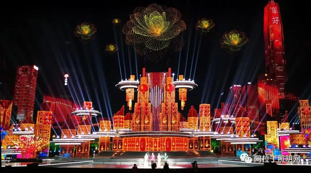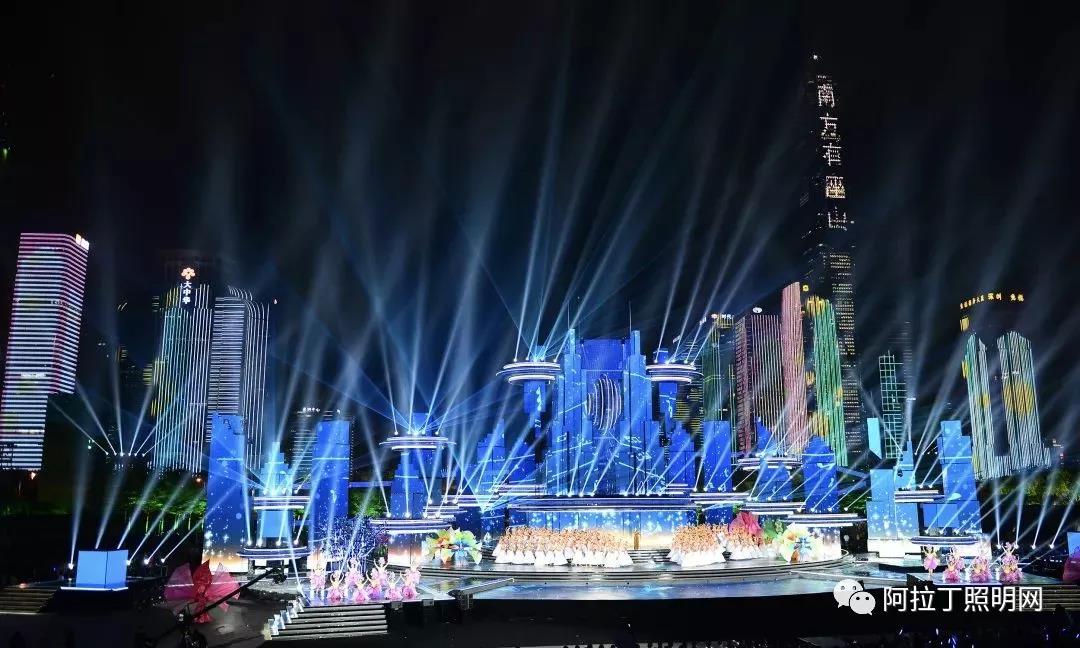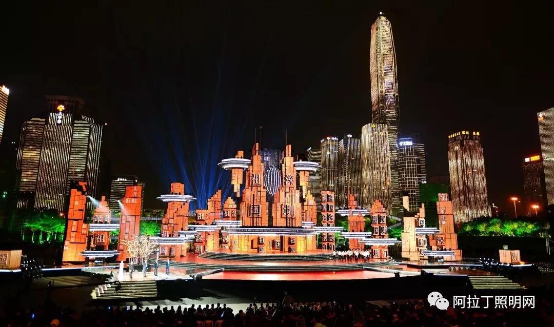 停机坪等带有未来科技元素的手段与多媒体楼体群相结合,创造性地将深圳的城市夜景融入舞台表演之中。而在灯光的表现上,