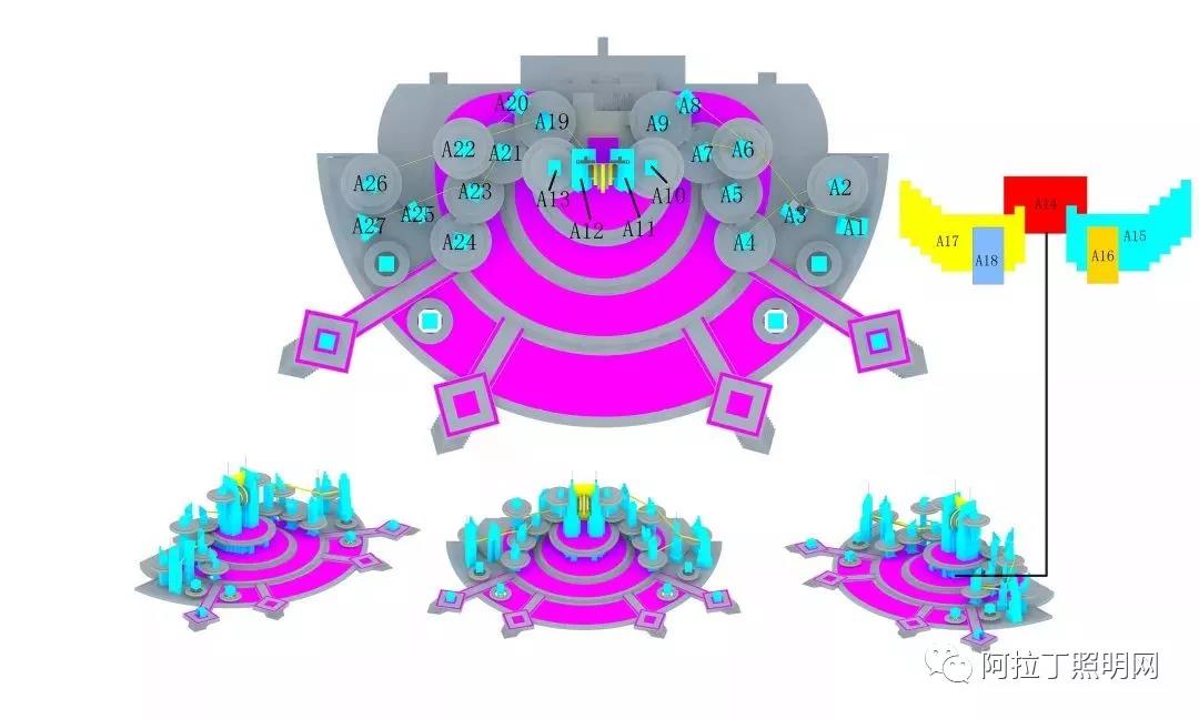 因此要从每一个环节都要考虑用光手段与手法。最后从多媒体楼体群的结合来说,多媒体楼体离现场观众比较远,