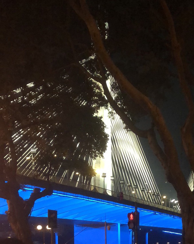 桥底两侧是常亮模式,节日期间会有色彩循环。桥面两侧有投光灯,