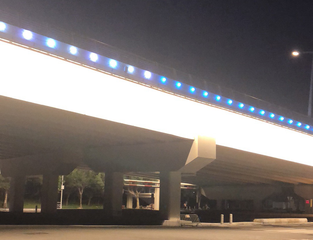 琶洲大桥运用了点光源和线条灯。灯的颜色可以随具体情况变化。