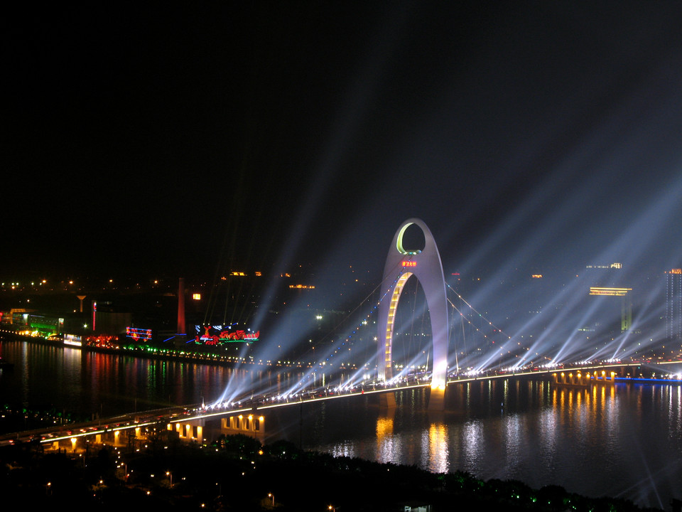 夜幕降临,猎德大桥的灯光亮起时,分外美丽。