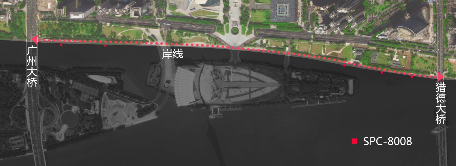 岸线距离较为远,在广州大桥和猎德大桥之间。