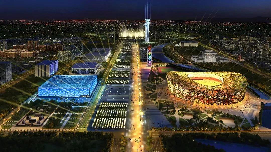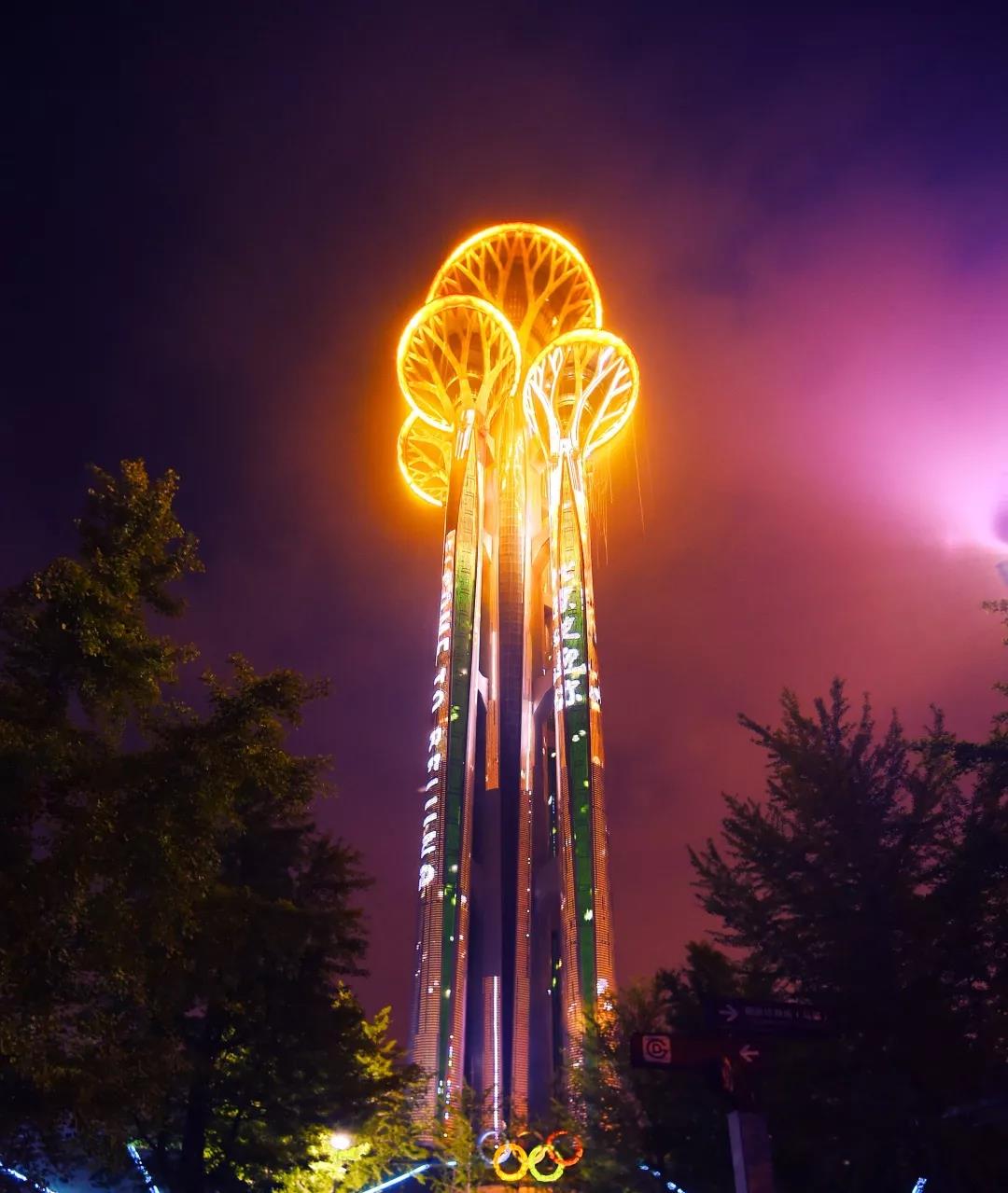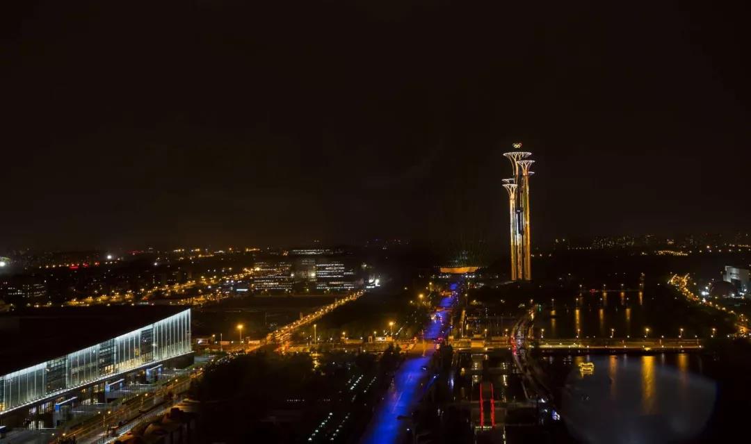 这场灯光秀以奥林匹克塔为核心,以北中轴黄寺大街作为行进起点,以奥森公园仰山为终点,