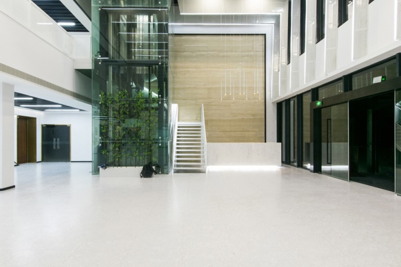The office space was divided into areas to meet different office needs, and reduces the energy consumption of large space. The double door at the entrance is designed to energy saving and heat insulation. The designs not only improve the efficiency of space uses, but also emphasize the benefits of ecological environment and resources, and optimizes the office environment.