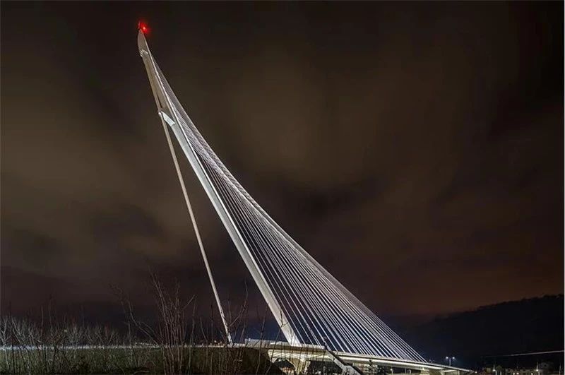 设计师在意大利卡拉布里亚南部地区建成了一座140米长(459英尺)人行天桥,以改善城市形象。这座新建的cosenza桥连接了该城市的两个重要区域,这两个区域分布在克拉蒂河的两段。斜拉索结构有一个突出的斜塔,看上去像一个巨大的竖琴。
