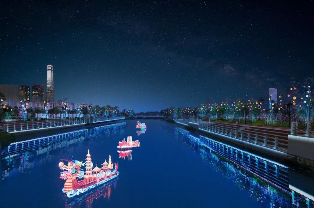 大型灯光造型、3D光幕喷泉、创意灯光小品、特色彩船和文化庙会各放异彩共同诠释中国灯饰特色小镇独特魅力