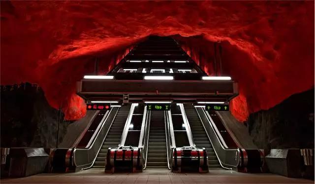 瑞典斯德哥尔摩的地铁站,可称为世界上最大的地铁艺术博物馆 ,在这里可以欣赏到成百上千位艺术家的作品,极富震撼力。部分斯德哥尔摩的地铁站保持了开挖隧道时的石头表面,并邀请艺术家作画或敷彩。