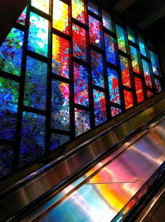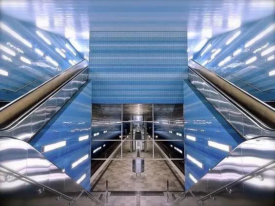 或许德国给人的印象就是冷静、机械、工业的,而慕尼黑这座城市地下却有着无比绚烂的色彩。高纯度彩色的墙面和灯光,让人感到自己乘坐的不是地铁,而是进入了某个游戏世界。