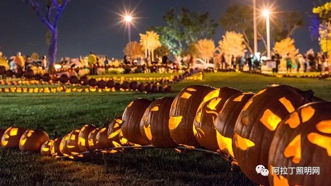 这列有史以来最长的雕刻南瓜,这些南瓜一共有1510个!脑补一下夜幕降临人群散去,这一排排南瓜对你露出诡异的笑脸……