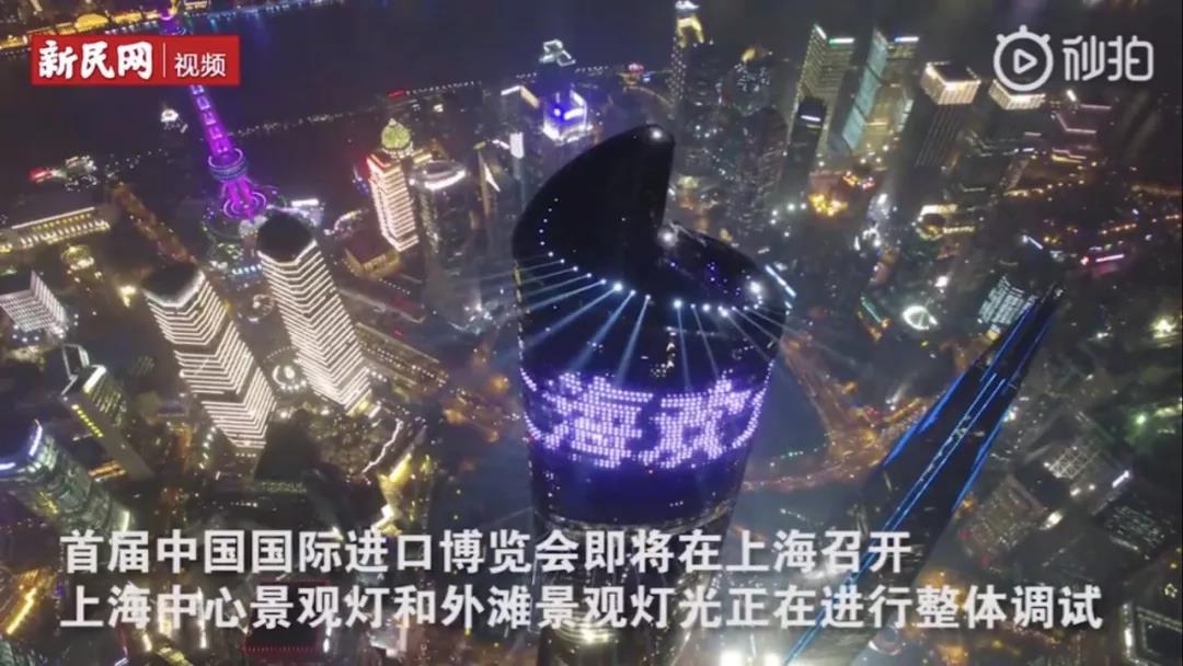 为了迎接中国国际进口博览会的到来,上海中心景观灯和外滩景观灯光正在进行整体调试。入夜,浦江两岸华灯齐放,