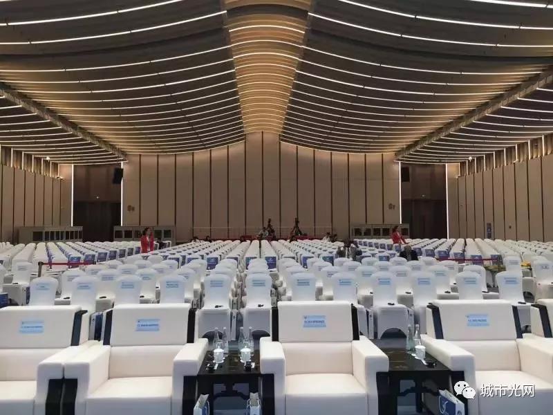 另外,平行论坛前厅的吊灯,由一根百米长的“飘带”弯曲折叠成一团而构成,展现出“绣球花”的造型,寓意一带一路,团聚美满。