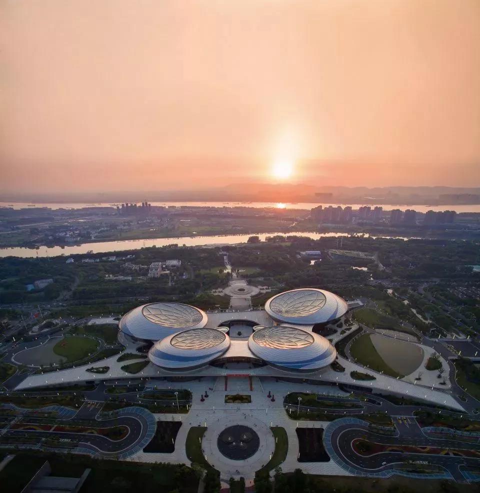 空中俯瞰,宛如漂浮在生态绿野之上的水珠,既寓含水韵江南的文化意蕴,又彰显汇流成川的包容胸怀。