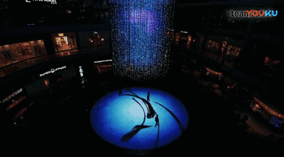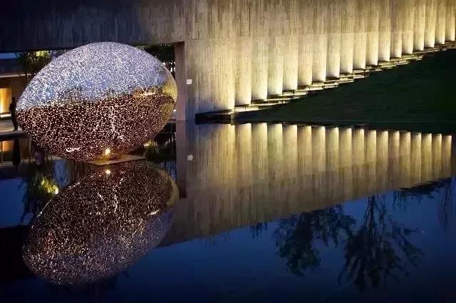 太俗......而在艺术家眼中的黄金在水面上方盘旋扭曲成三维立体的灯光装置