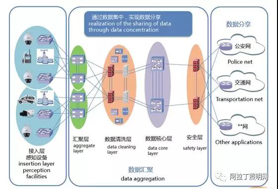 该系统包括能够对感知设备的接入层,具有收集、清洗、安全等数据汇聚层,可以数据分享到各个专业网络的应用层。