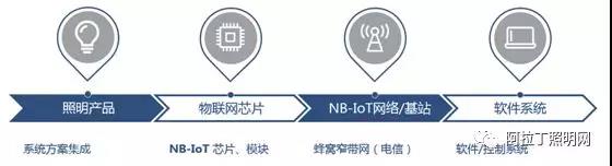 即将NB-IoT芯片加入到LED灯中,形成NB-IoT物联网通信方式的智慧照明产品。系统由电信运营商提供蜂窝窄带