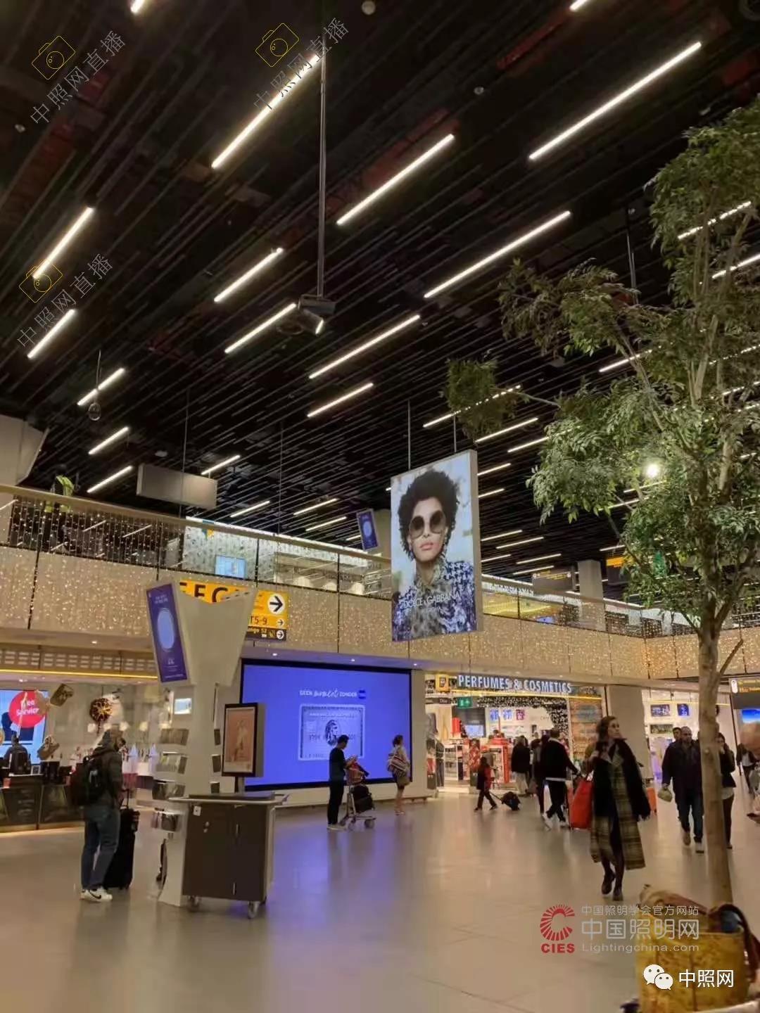 准备转机飞往法国尼斯。在机场通道里,考察团成员们不时观看各种造型精美的灯具。