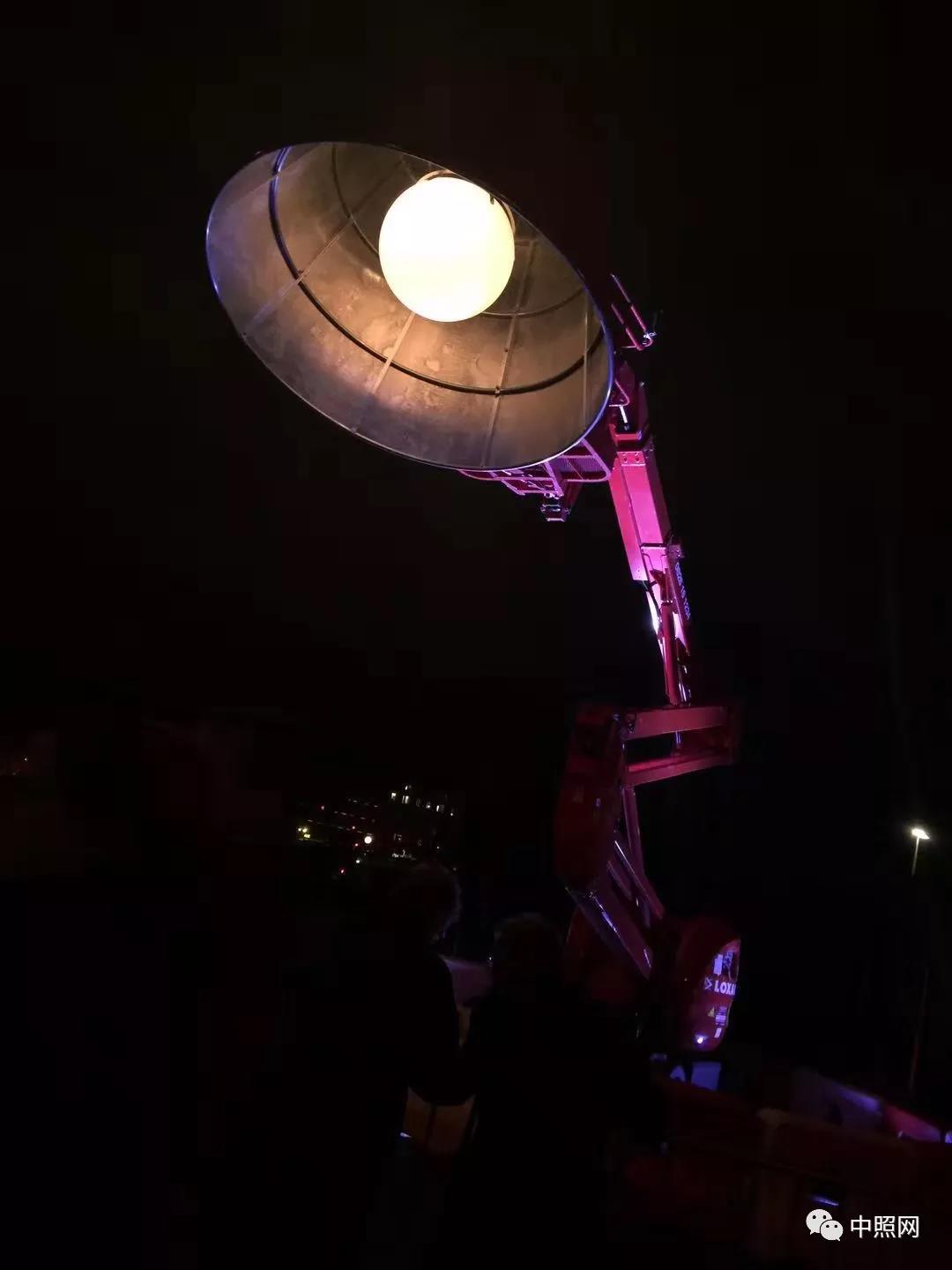 利用高空作业平台制作巨型的台灯,仿佛在提醒人们,