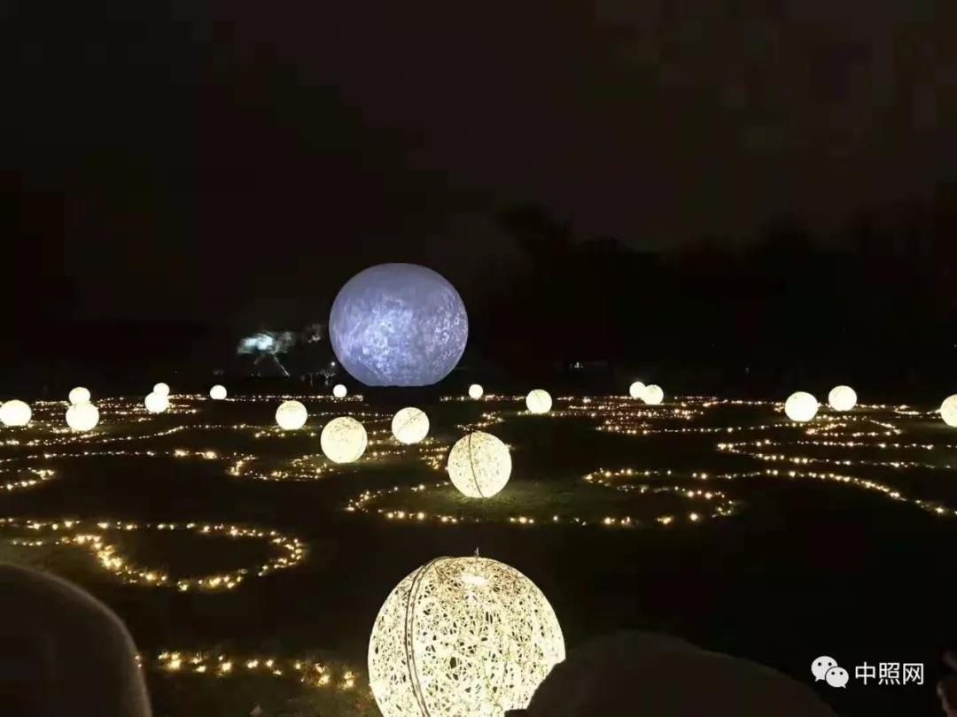 这个巨大的灯光装置将整个变成了游乐场地,众多发光球散落在广场上......