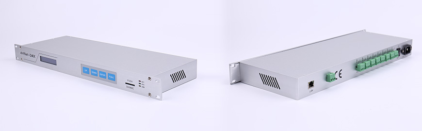 Adopting TCP/IP standard Ethernet protocol, it has wide range of application and reliable communication. Any computer in the LAN can operate the software to control the lighting effect. Support wireless WIFI transmission, only by adding wireless routers can be achieved, suitable for wiring is not easy to use. The controller can set the IP address, subnet and DMX512 output port freely, and can control the output at any time to meet the requirement of a specific occasion.