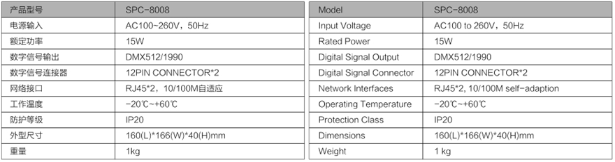 SPC-8008 is the company for large-scale LED control system and specially designed an online controller. SPC-8008 uses 32 bit high speed DSC processor to make the scene of the lighting more subtle and soft, and the stability and reliability of the system are fully guaranteed. With powerful video codec software DMX-NET, it can control the rules, shapes, and other points, lines, and surface light source.
