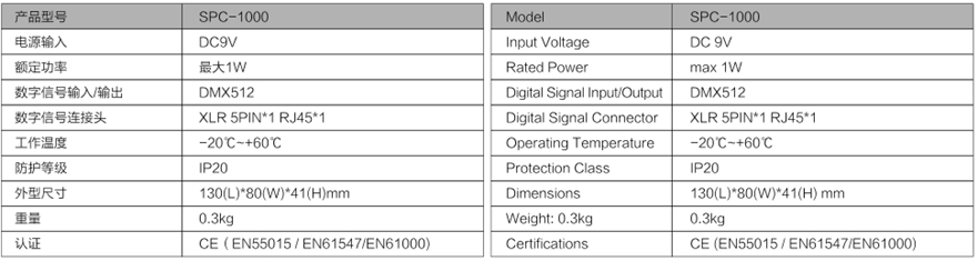 SPC-1000 是本公司针对小型LED控制/演示系统而特别设计的一款脱机DMX512播放器。SPC-1000采用32位高速ARM处理器,使灯光场景的过度更加细腻柔和,系统的稳定可靠性得到充分的保证。通过读取MMC/SD卡存储场景文件,可轻松将文字、FLASH动画、视频、图像等媒体信息展现于艺术灯光环境中。